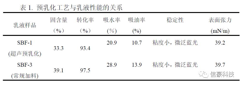表1. 預(yù)乳化工藝與乳液性能的關(guān)系